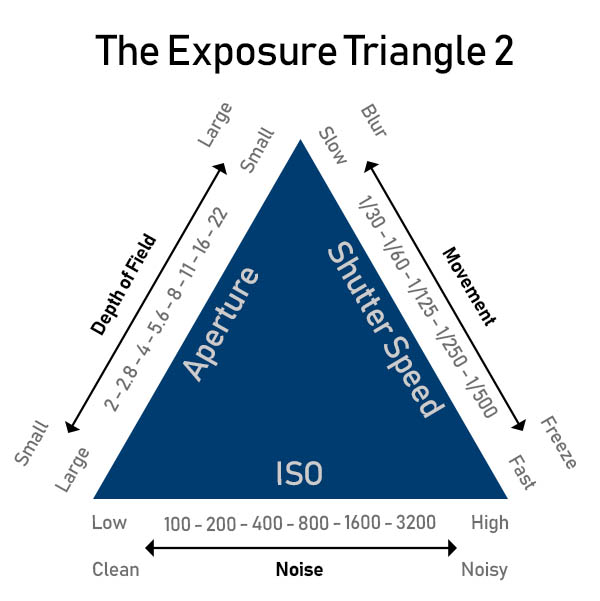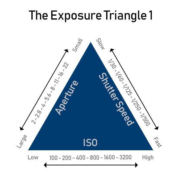 Exposure is set via a combination of aperture, shutter speed and ISO. This is often referred to as ‘The Exposure Triangle’.